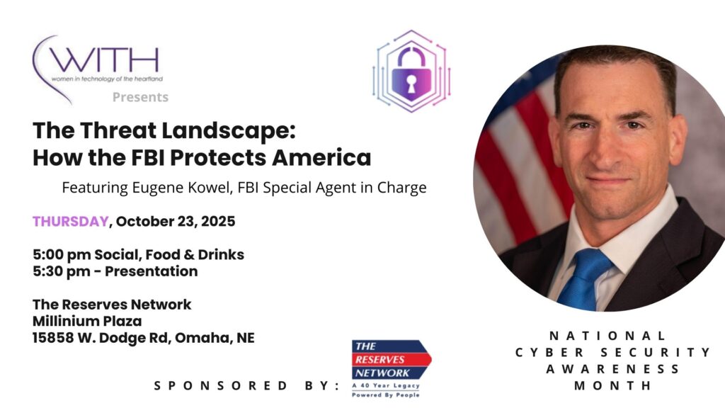 Register to join Women in Technology of the Heartland for a powerful session with Eugene Kowel, Special Agent in Charge of the FBI’s Omaha Field Office, as he takes us inside The Threat Landscape and How the FBI Protects America.